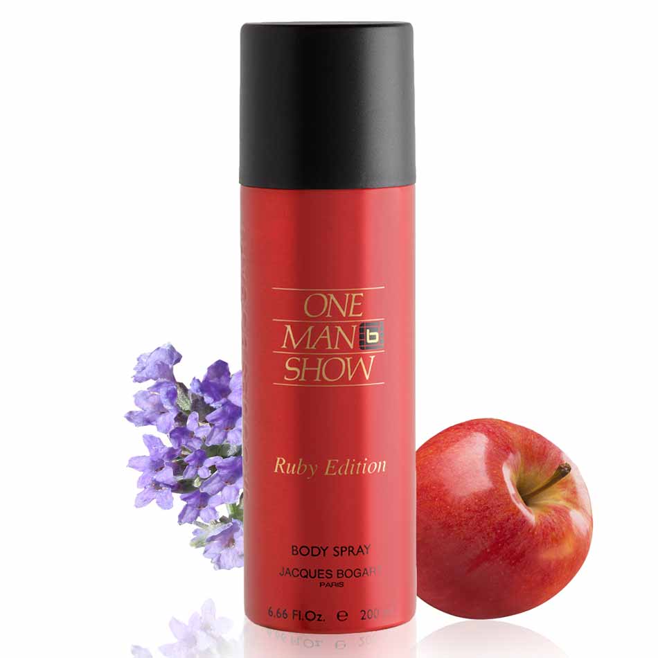 Reveal your true identity with this one man show ruby deodorant from Jacques Bogart. The composition of this deodorant starts with truly refreshing notes of orange leaves, aromatic frozen lavender and green apple with a warm and mysterious heart full of shades of intense saffron, incense and labdanum. Its base note is deep and warm, created of oud, red cedar and honey.