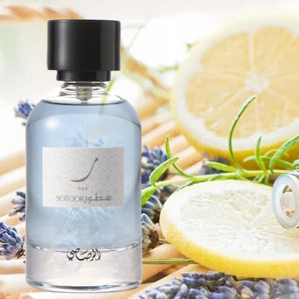 Sotoor Raa' by Rasasi is a fragrance for women and men. Sotoor Raa' was launched in 2017. Top notes are Lemon and Bergamot; middle notes are Jasmine, Nutmeg and Lily-of-the-Valley; base notes are Musk and Patchouli